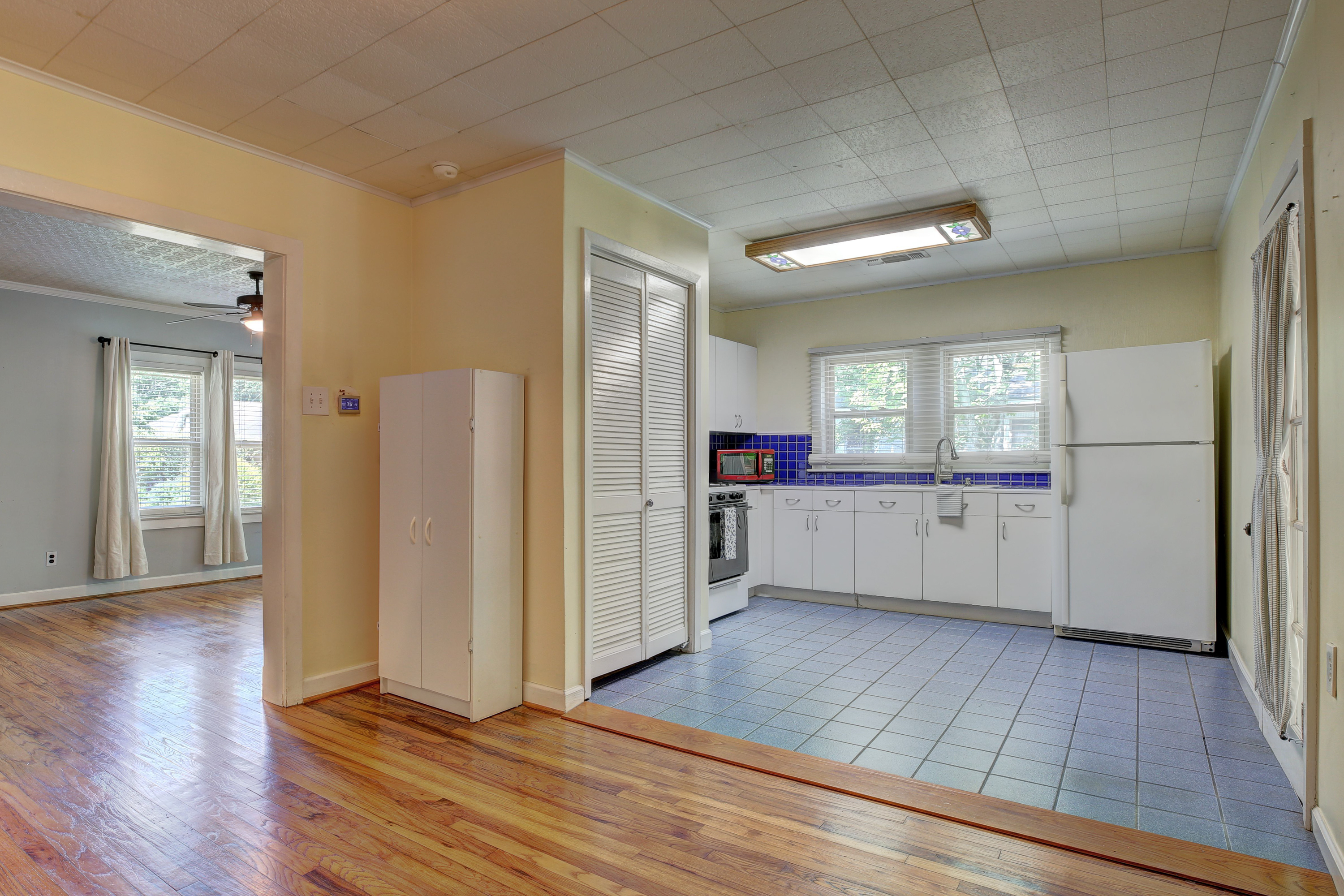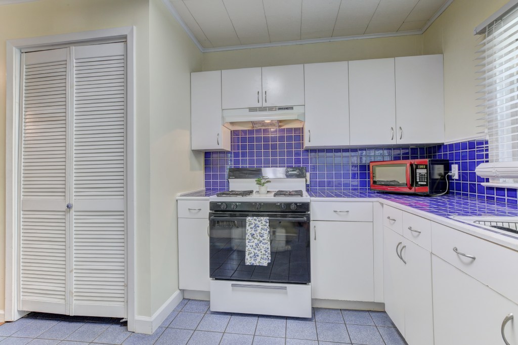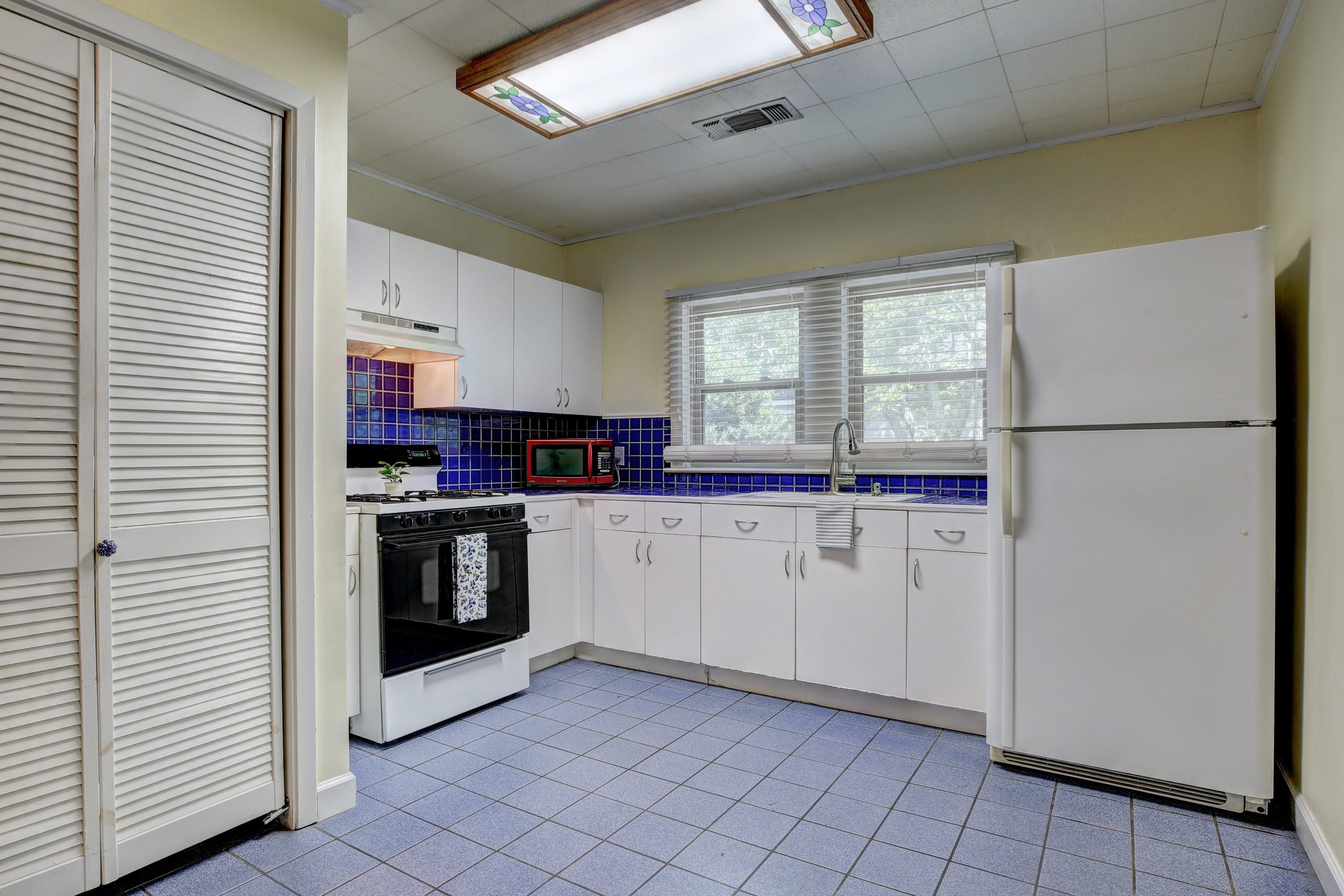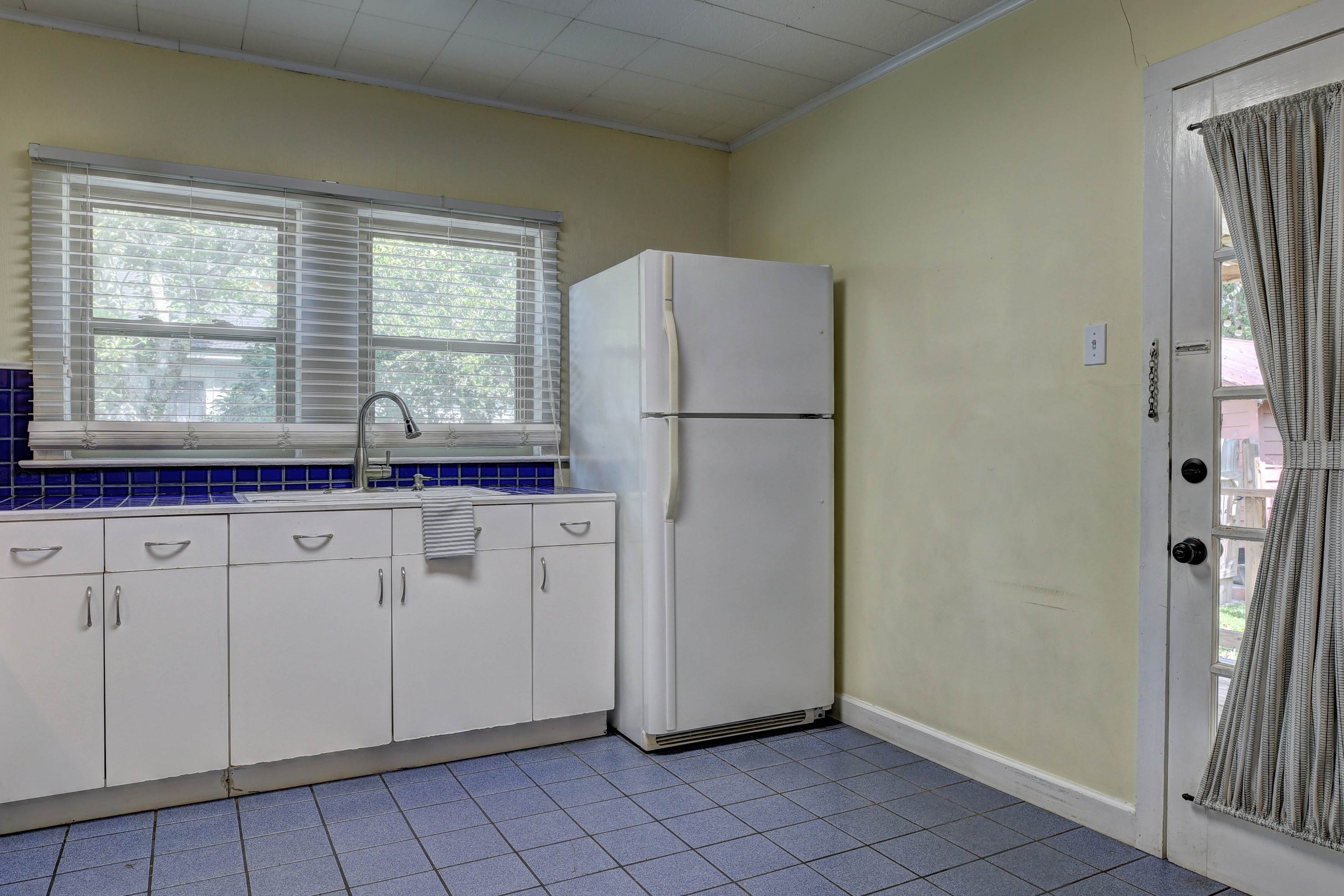 Saint Street charmer! The curb appeal of this cute cottage will catch your eye, with its inviting front porch and clean appearance from the street. Step into the large living room with wood floors, where you will find space to entertain numerous guests. Beyond the living room is a dining area to accommodate a table and chairs just off of the kitchen with blue tile counter tops and back splash, which bring color to contrast the white cabinets. There is a gas range/oven, refrigerator and microwave included in the sale of the home. The full bath offers a modern tile floor and a sleek pedestal sink , while keeping the old school charm of a laundry hamper cabinet. Don’t miss the spacious covered back patio surrounded by lush landscaping, a perfect place to drink morning coffee or hang out with friends. The backyard is fully fenced with a large magnolia tree providing shade at the rear of the yard. This great home is located just around the corner from the Cajundome, with close proximity to downtown Lafayette, and less than two miles from ULL. Follow us here for all homes for sale and for rent in the Saint Streets in Lafayette, LA.